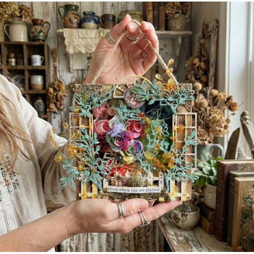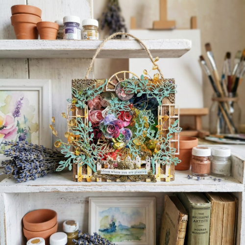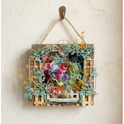 Material: Wood, string, metal, paper flowers, sisal, plastic, chipboard.