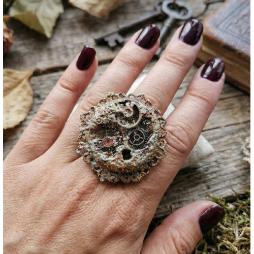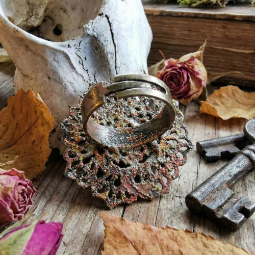 Mixed media ring (copper, zinc alloy, plastic, acryl). Light, covered with protection layer, doesn´t stain fingers.