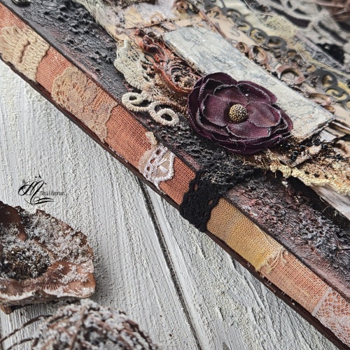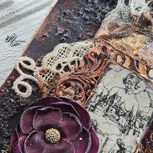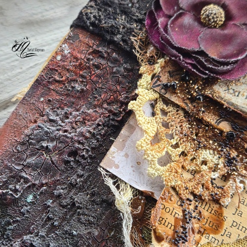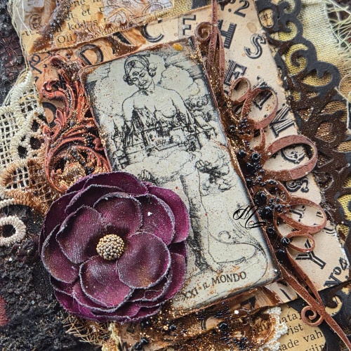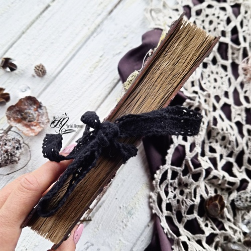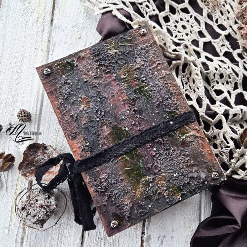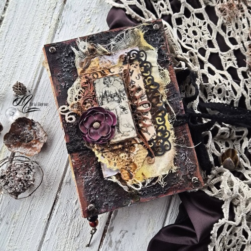 Kõvakaaneline vintaažne A5 formaadis märkmik "Saladus". Segatehnikas kaaned on mõlemalt küljelt kaunistatud. Ohtralt on kasutatud erinevaid tekstuure, krakleelakki ja värve. Esikaanel on XXI taro kaart "Maailm".
