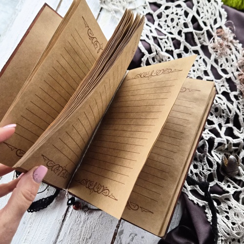 Sees on ca 120 joonelist lehte tihedast kraftpruunist paberist.