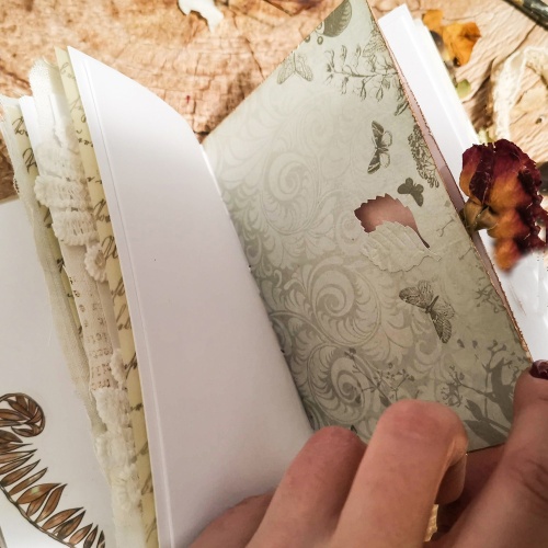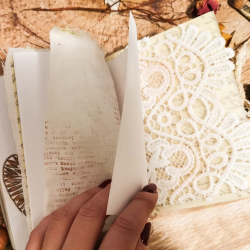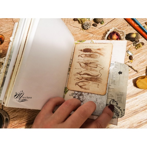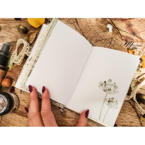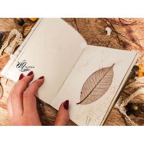 A6 formaadis segatehnikas kaantega märkmik, nn junkbook, kus on lisaks valgetele lehtedele plokki köidetud ka palju erinevaid vahelehti. Sisus on kasutatud ise kujundatud paberit, disainpaberit, väljalõikeid, kangast, pitsi, taskuid, trükitud kalkat jpm. Valgeid lehti on kokku ca 50.