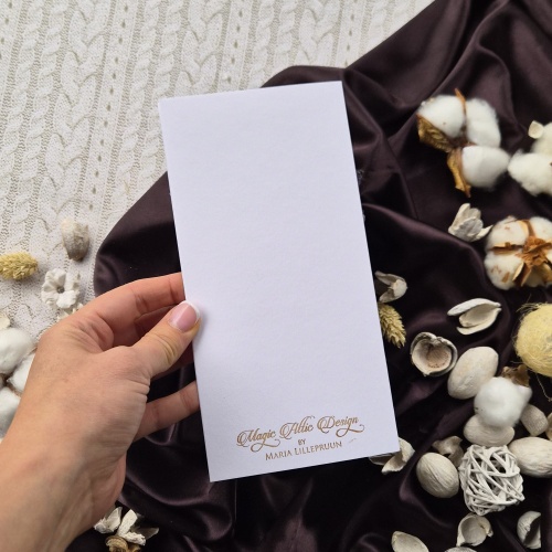Soovi korral võib sisse kleepida ka tasku rahakingituse jaoks. Kleeplindiga varustatud pabertasku on kaardi sisse lisatud, kuid pole kinnitatud.