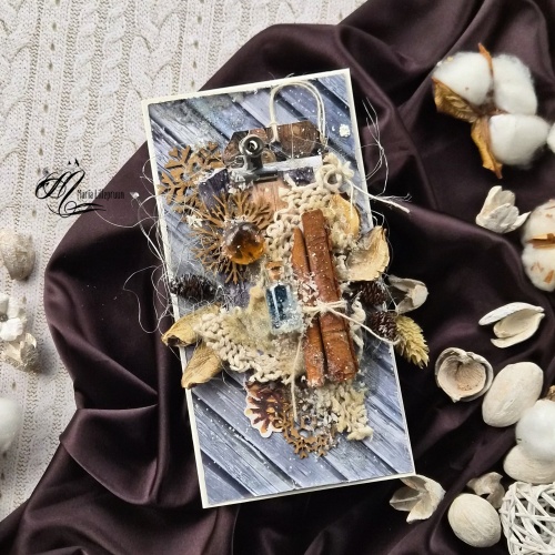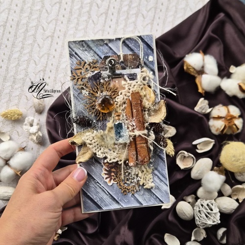 Talvine piklik mixed media (segatehnikas) kaart, kirjadeta.