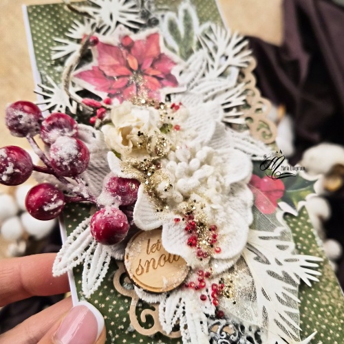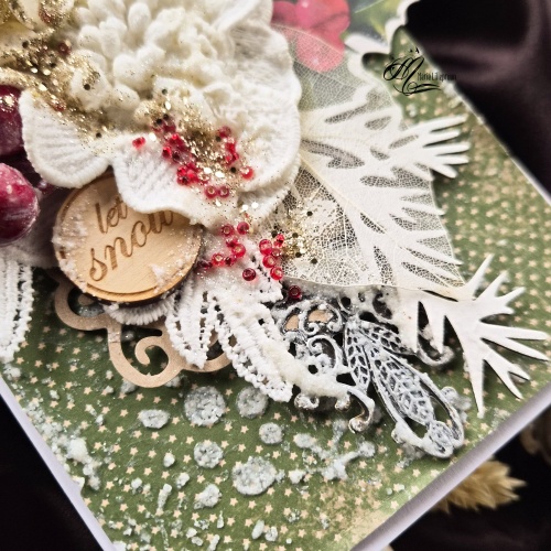 Talvine piklik mixed media (segatehnikas) kaart kirjaga "Let it snow".